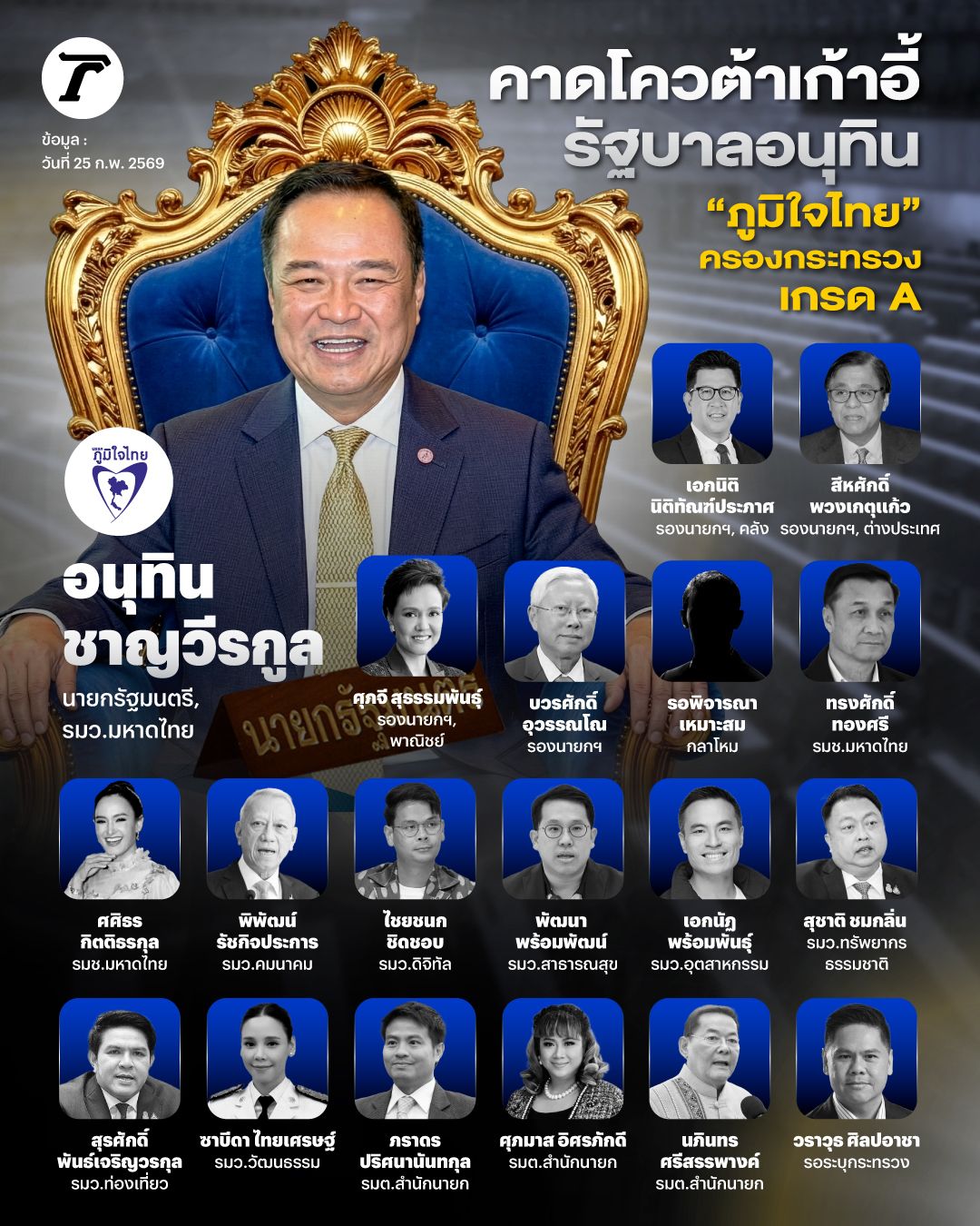 รายงานความเคลื่อนไหวการจัดตั้งรัฐบาล วันนี้ (25ก.พ.69) เริ่มเห็นเค้าลางโดยมีการเริ่มแบ่งโควตาโดยแกนนำพรรคภูมิใจไทย ดังนี้