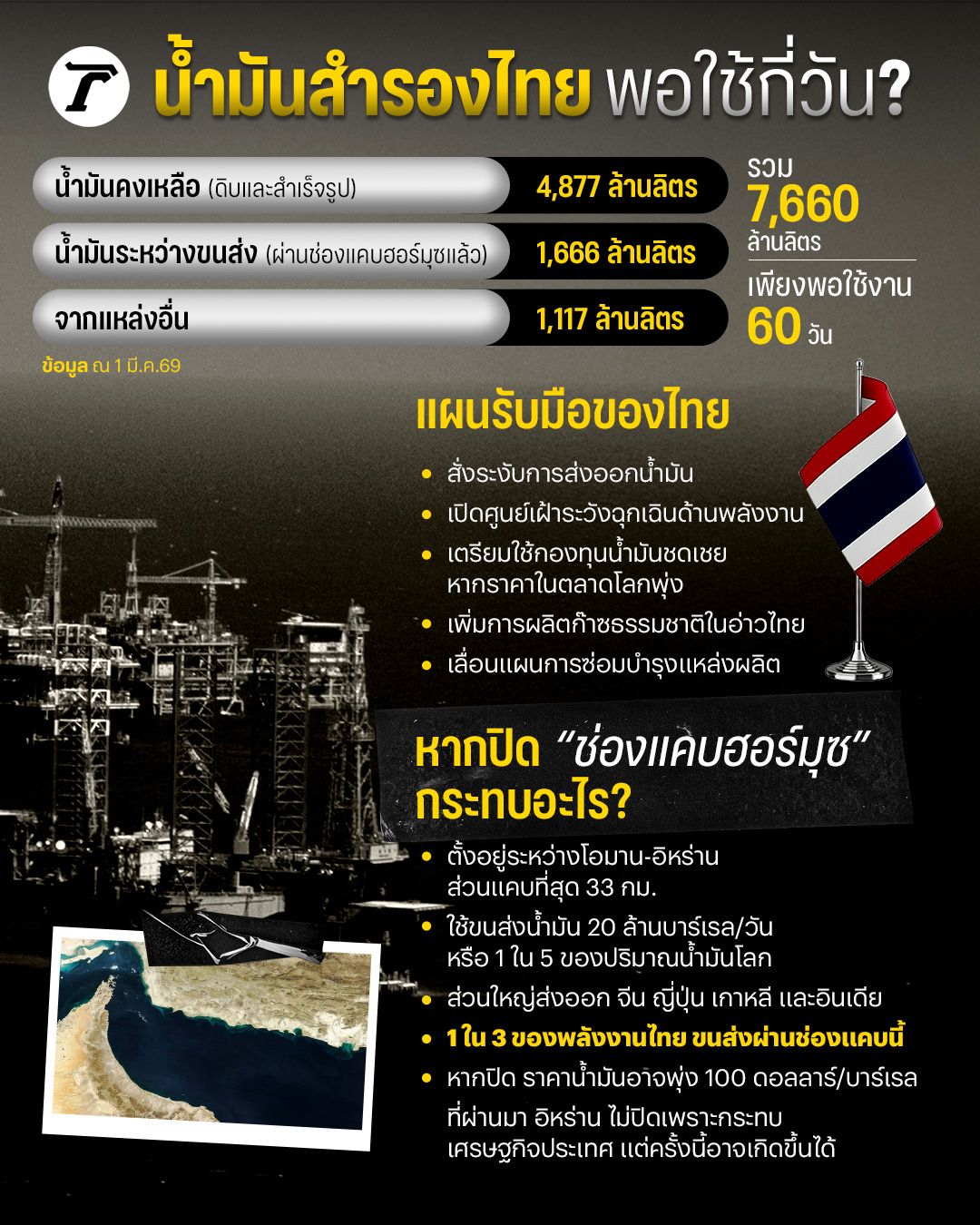 เช็กปริมาณน้ำมันสำรองของไทย จะกระทบอย่างไรหากปิด “ช่องแคบฮอร์มุซ” เส้นทางขนส่งน้ำมันสำคัญของโลก ล่าสุดกระทรวงพลังงานออกมาตรการรับมือแล้ว