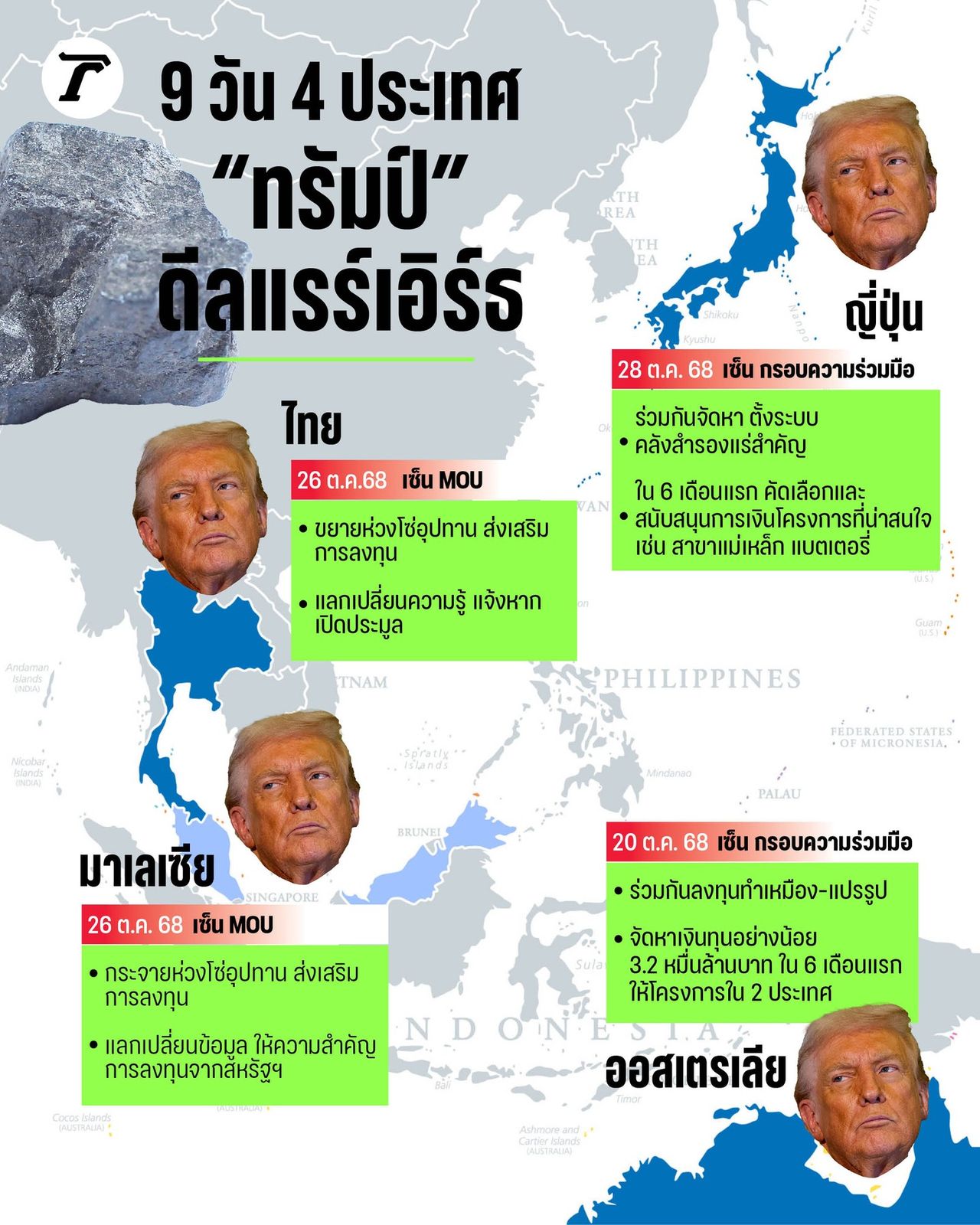 9 วัน 4 ประเทศ "ประธานาธิบดีทรัมป์" เดินหน้าลงนาม MOU-กรอบความร่วมมือ "แรร์เอิร์ธ" หวังกระจายห่วงโซ่อุปทาน ลดการพึ่งพา "จีน" ผู้เป็นเจ้าตลาด