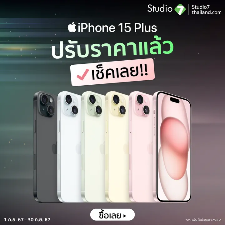 💚 Studio7 ปรับราคา iPhone15 และ iPhone15 Plus ลดสูงสุด 21%