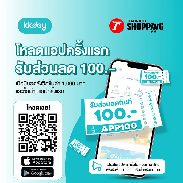 ส่วนลด 100 บาท เมื่อมียอดซื้อขั้นต่ำ 1,000 บาท และสั่งซื้อผ่านแอป KKday ครั้งแรก!