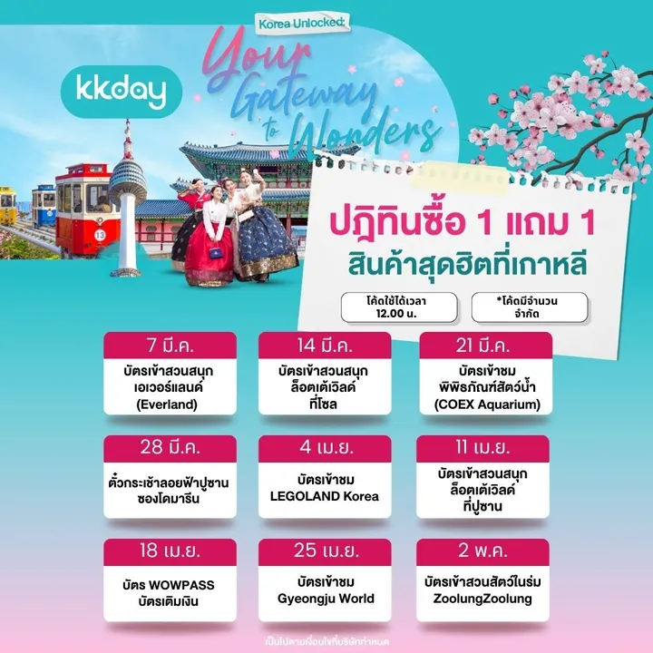 🇰🇷 KKday x KTO จัดโปรโมชั่นส่วนลดกิจกรรมที่ประเทศเกาหลีแจกโค้ดส่วนลดตั้งแต่วันที่ 7 มีนาคม - 2 พฤษภาคม 2568