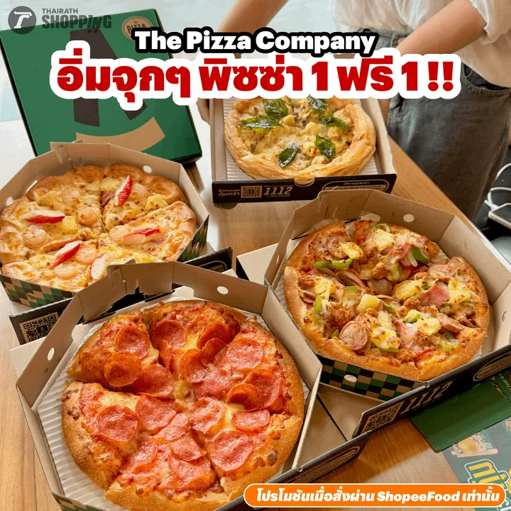 เหล่าพิซซ่าเลิฟเวอร์ต้องไม่พลาดกับอีกหนึ่งโปรโมชันสุดคุ้มจาก The Pizza Company อย่างโปรซื้อ 1 แถม 1 ที่มีพิซซ่ามาให้เลือกหลายหมวดหมู่ หลายหน้า ในราคาเริ่มต้นเพียง 369 บาทเท่านั้น ใครที่กำลังวางแผนปาร์ตี้ ไม่ว่าจะเป็นครอบครัว เพื่อนสนิท หรือที่ออฟฟิศ สามารถกดสั่งได้แล้ววันนี้ที่ ShopeeFood ในโปรนี้จะมีพิซซ่าอะไรน่าสนใจบ้างติดตามได้ที่นี่