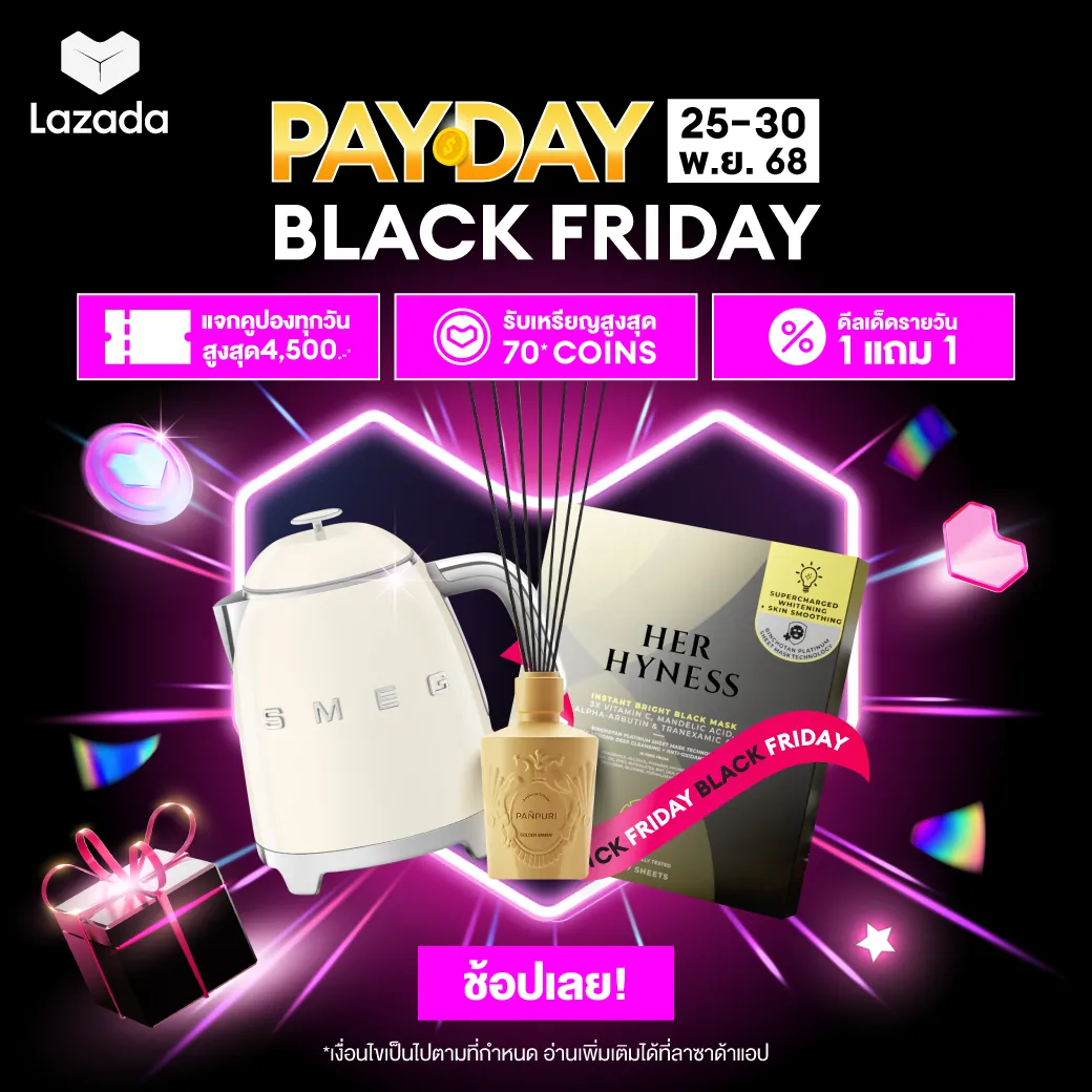ลาซาด้าส่งท้ายเดือนพฤศจิกายน พร้อมเตรียมรับเทศกาลท้ายปีด้วยโปรโมชัน Lazada Pay Day Sale 11.25 Black Friday ช็อปทุกวันยันสิ้นเดือน มีสินค้าจากแบรนด์ดังลดราคามากมาย ลดสูงสุด 90% สามารถใช้คูปองส่วนลดได้หลายต่อ ไม่ว่าจะเป็น คูปองส่วนลดจากแพลตฟอร์มสูงสุด 3,100 บาท, ส่วนลดจากร้านค้าสูงสุด 20%, LazFlash ช่วยเปย์สูงสุด 70%, ส่วนลดจาก Coins, คูปองส่งฟรี และคูปองส่วนลดจากพาร์ตเนอร์ เตรียมเก็บคูปองและช็อปพร้อมกันได้ตั้งแต่วันที่ 25-30 พ.ย. 68