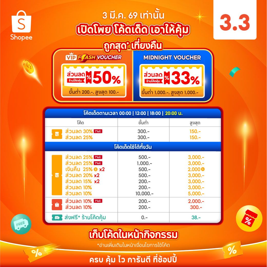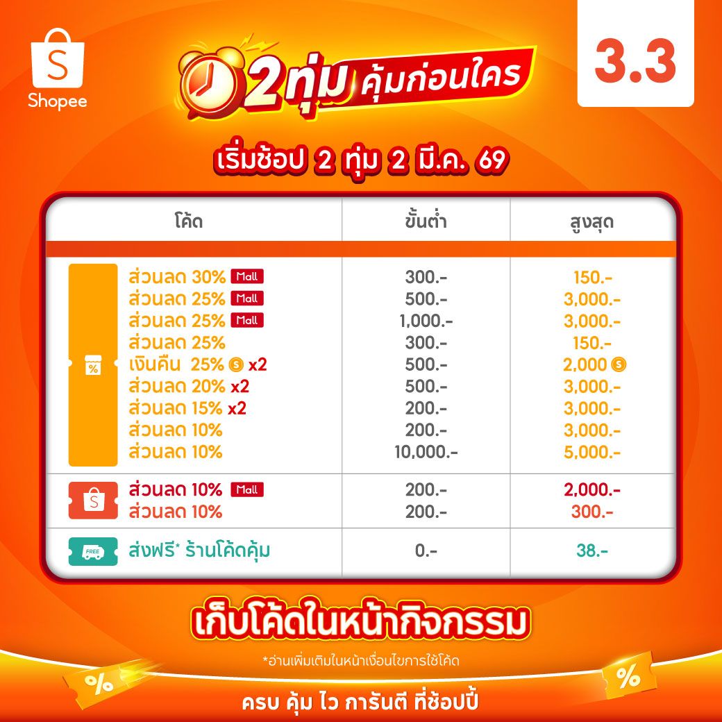 โพยโค้ด Shopee 3.3 ช้อปก่อนใครรอบ 2 ทุ่ม 2 มี.ค. 69