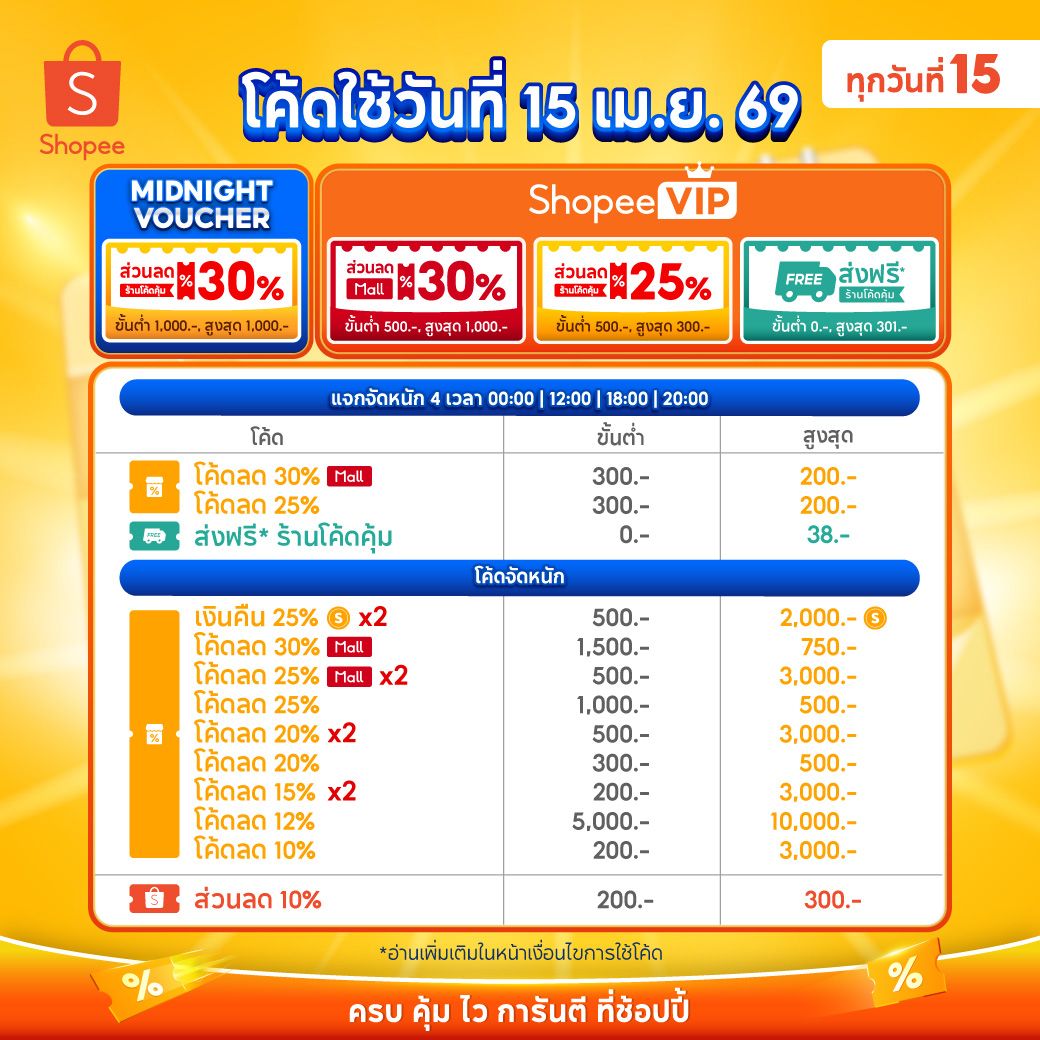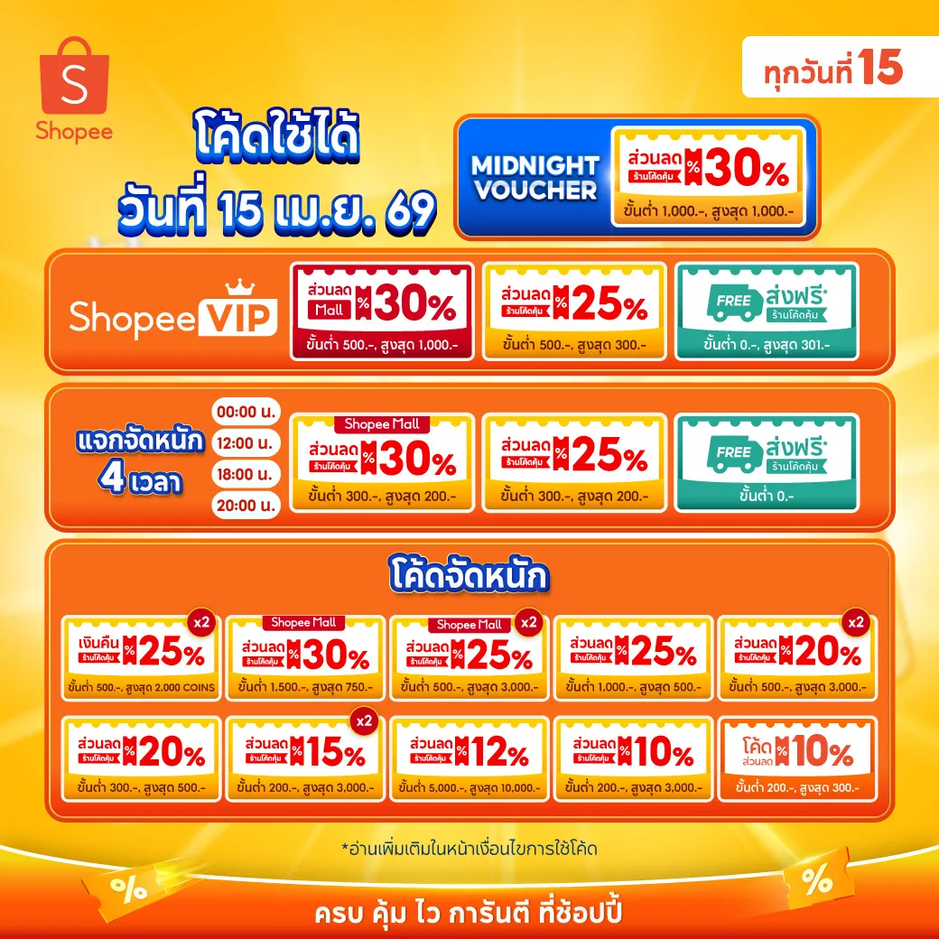 เก็บและใช้โค้ดได้วันที่ 15 เม.ย. 69 เวลา 00.00 น.