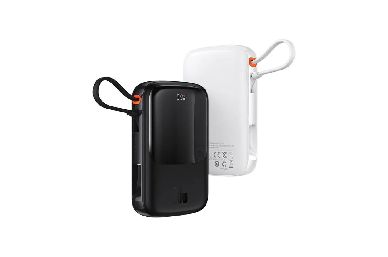 พาวเวอร์แบงก์ความจุ 10000 mAh จาก Baseus รุ่นนี้พิเศษตรงที่มีสายชาร์จ Build-in มาให้ในตัว มีให้เลือกทั้งรุ่นที่เป็นสาย Type C สำหรับมือถือ Andriod และรุ่นที่เป็นสาย Lightning สำหรับ iPhone นอกจากนี้ยังมีหน้าจอดิจิทัลสำหรับแสดงสถานะแบตเตอรี่ให้เห็นอย่างชัดเจน และยังรองรับการชาร์จเร็วสูงสุดถึง 20W ด้วย