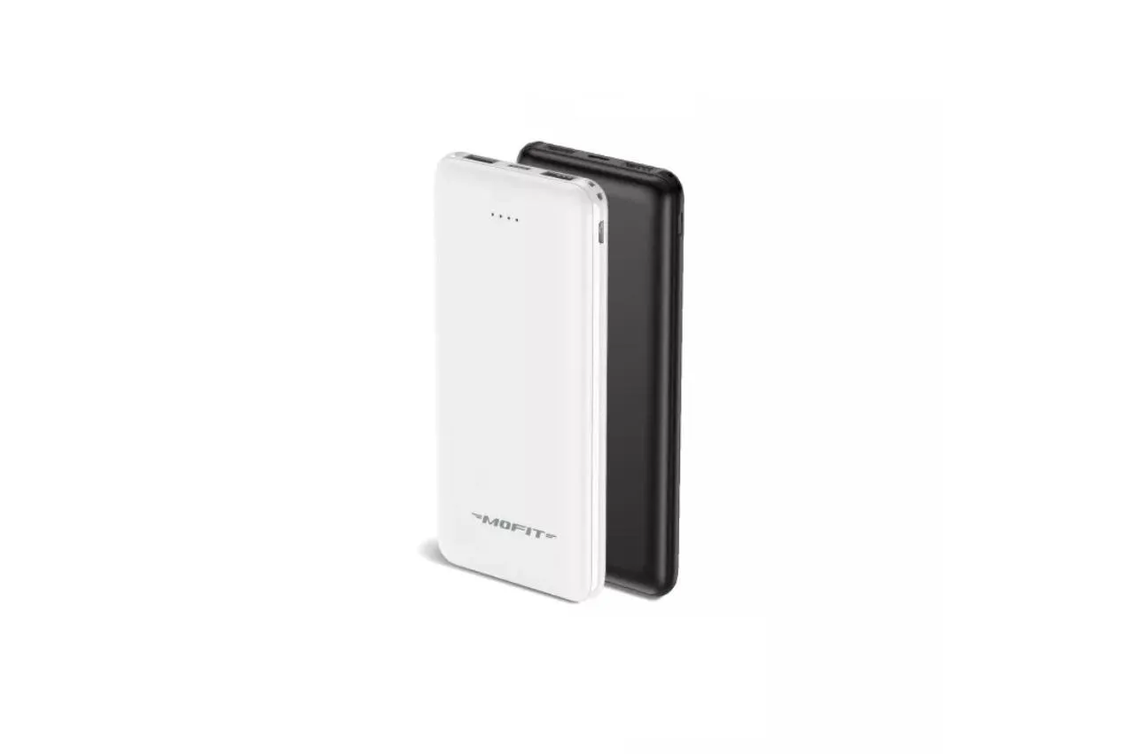 แบตเตอรี่สำรองจาก Mofit ความจุ 10000 mAh เป็นพาวเวอร์แบงก์อีกหนึ่งรุ่นที่ราคามิตรภาพ ตัวเครื่องบางและมีน้ำหนักเบา สามารถพกพาได้สะดวก มาพร้อมสำหรับการชาร์จไฟพอร์ต USB 2 พอร์ต นอกจากนี้ยังมีไฟแสดงสถานะการทำงานและเปอร์เซ็นต์แบตเตอรี่ด้วย