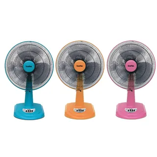 พัดลมตั้งโต๊ะขนาด 8 นิ้ว กะทัดรัด สะดวกต่อการพกพา ใช้มอเตอร์ที่มีระบบหล่อลื่นแบบ Ball Bearing ปรับความแรงลมได้ 2 ระดับ ปรับส่ายซ้าย-ขวาได้ ดีไซน์เรียบง่าย พัดลมมีให้เลือก 5 สี คือ สีขาว สีเขียว สีพีช สีเลม่อน และสีลาเต้