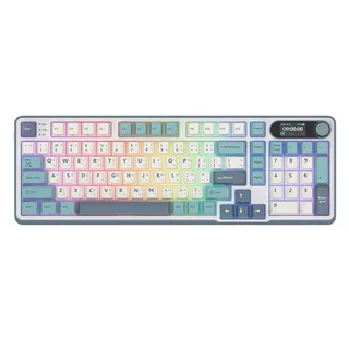 Royal Kludge RK S98 Blackberry 98 Key Tri-Mode RGB อีกหนึ่งคีย์บอร์ดไร้สายที่เชื่อมต่อได้ถึง 3 โหมด คือ สายเคเบิล, Wifi 2.4G และ Bluetooth สามารถเชื่อมต่อได้พร้อมกัน 3 เครื่อง มีหน้าจอ TFT ขนาด 1.47 นิ้ว ที่แสดงโหมดการเชื่อมต่อต่างๆ ตลอดจนการตั้งค่าแสงไฟและโหมดการทำงาน มีแบตเตอรี่ในตัวความจุ 3,750 mAh มีไฟ RGB ให้ในตัว สามารถปรับโหมดไฟได้ 14 โหมด มีปุ่ม knob สำหรับเพิ่มและลดเสียง