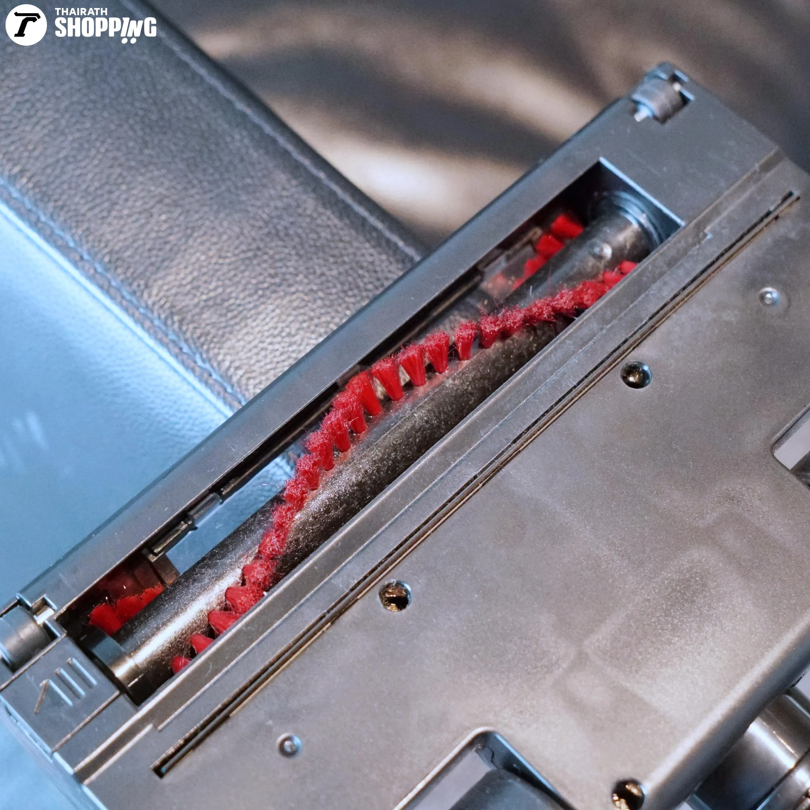 ในส่วนของหัวแปรงเป็นอีกจุดเด่นที่ไม่พูดถึงไม่ได้ หัวแปรงของรุ่นนี้เป็นแบบหมุนเกลียว มีข้อดีคือขนแปรงจะช่วยปัดเส้นผม เศษอาหาร และเศษฝุ่นต่างๆ เข้าตัวเครื่อง ทำให้ดูดฝุ่นได้สะอาดมากยิ่งขึ้น