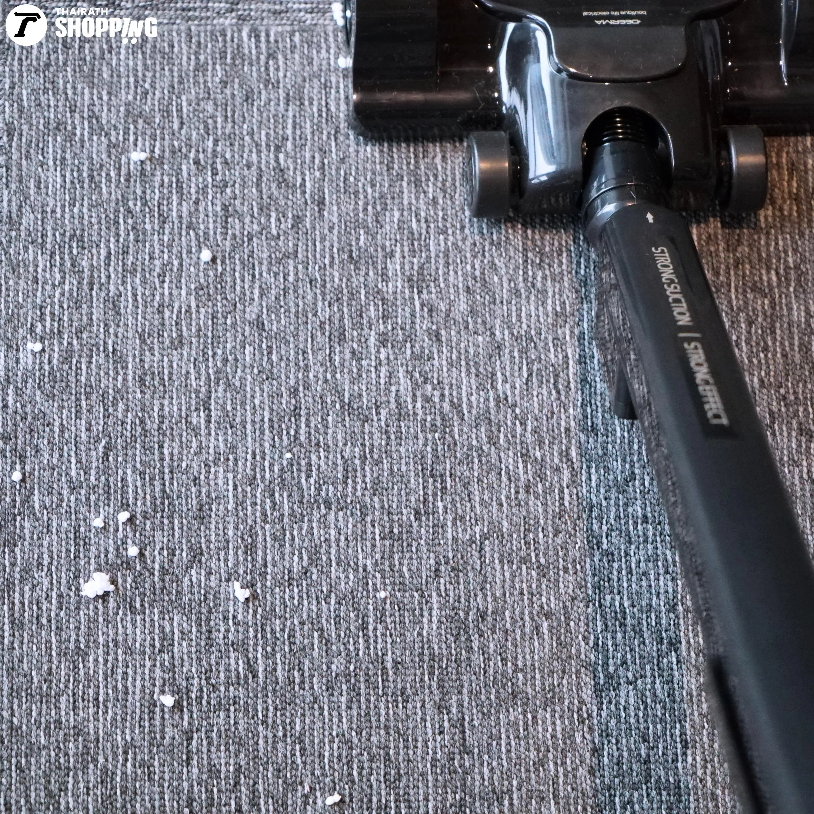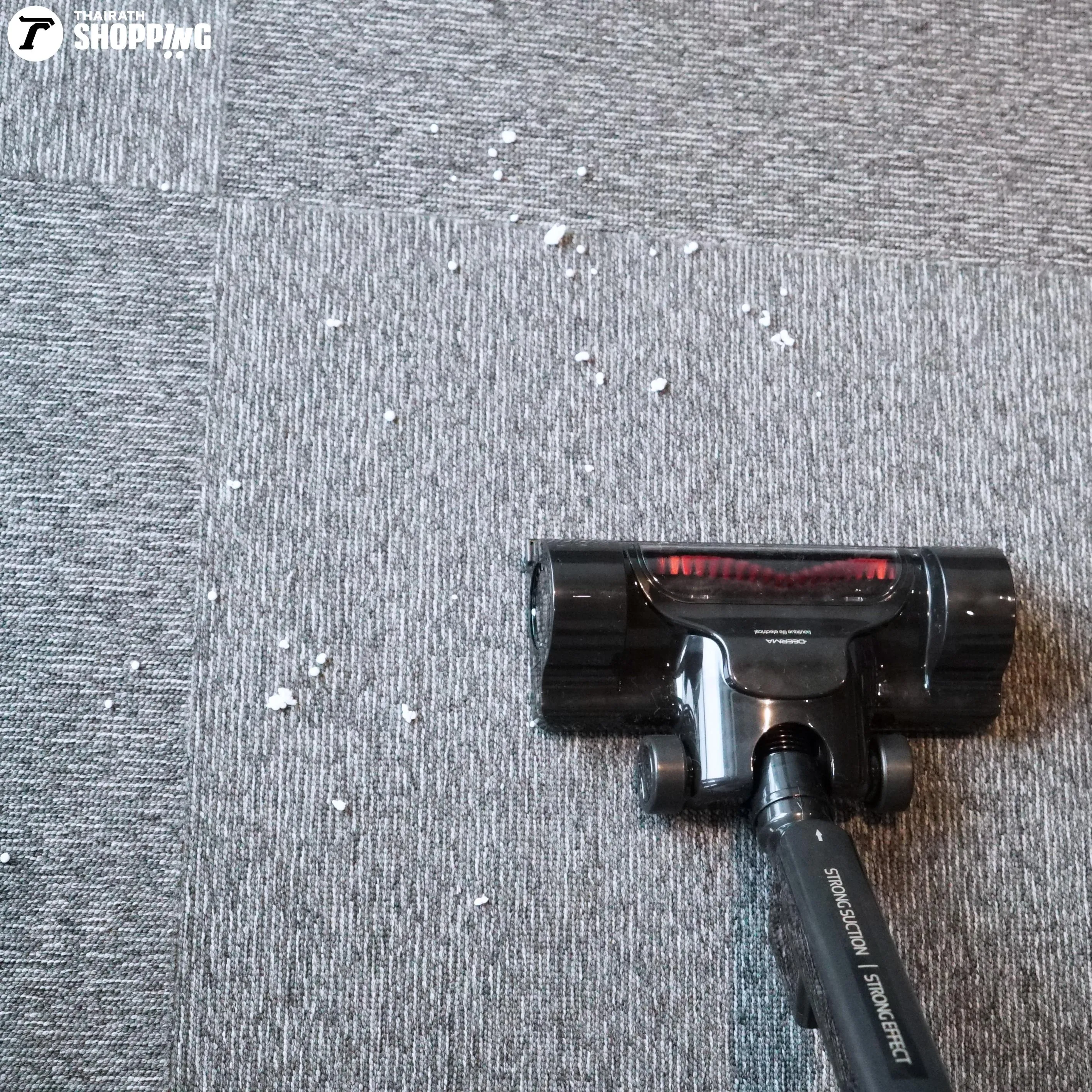 จากการทดลองใช้ดูดเศษโฟมบนพื้นพรม จะเห็นได้ว่าเครื่องดูดฝุ่นรุ่นนี้สามารถดูดเม็ดโฟมขึ้นมาที่ถังเก็บฝุ่นได้เกลี้ยง รวมไปถึงเส้นผมและเศษฝุ่นเล็กๆ ด้วยเช่นกัน