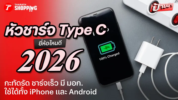 ชาร์จไวทันใจกับ 10 หัวชาร์จ Type C ยี่ห้อไหนดี 2026 รองรับชาร์จเร็ว ไม่ร้อน ใช้ได้ทั้ง iPhone / Android