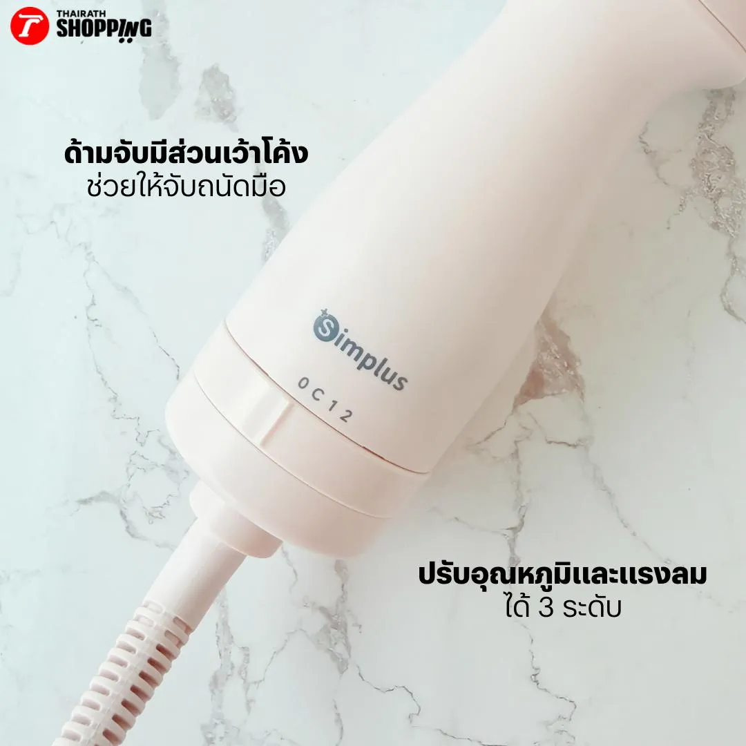 หวีไดร์ Simplus รุ่นนี้สามารถปรับอุณหภูมิและความแรงลมได้ 3 ระดับ สามารถปรับได้ง่ายด้วยการบิดที่วงแหวนด้านล่าง