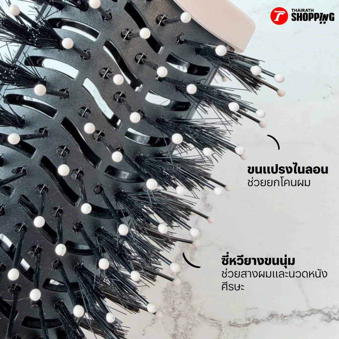 ตัวแปรงมีขนาดใหญ่ ออกแบบมาให้เป็นทรงรีที่ปล่อยลมได้รอบทิศถึง 360° ช่วยเป่าผมให้แห้งอย่างทั่วถึง มาพร้อมขนแปรง 2 ชั้น คือ ชั้นขนแปรงไนลอน ช่วยจับช่อผมให้แน่นและยังช่วยยกโคนผม และชั้นซี่หวียางที่มีความนุ่มและยาว ช่วยสางผมไม่ให้พันกัน ช่วยนวดหนังศีรษะ พร้อมป้องกันความร้อนสัมผัสเส้นผมโดยตรง