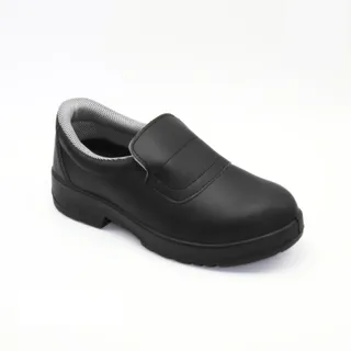 รองเท้าเซฟตี้แบบ Slip-on มาพร้อมเหล็กหุ้มบริเวณส่วนหัวของรองเท้า รองเท้าผลิตโดยใช้วัสดุไมโครไฟเบอร์ มีความทนทาน กันน้ำได้ พื้นรองเท้าด้านนอกเป็นพื้นยาง ช่วยกันลื่น ทนต่อไฮโดรคาร์บอน และช่วยป้องกันไฟฟ้าสถิต รองเท้าเซฟตี้รุ่นนี้ทำความสะอาดได้ง่าย และสามารถซักกับเครื่องซักผ้าได้ โดยซักที่อุณหภูมิน้ำไม่เกิน 30 องศาฯ