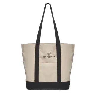 Frenchie Canvas Tote Bag จากแบรนด์ ESP กระเป๋าผ้าแคนวาสเคลือบสารสะท้อนน้ำ ช่วยป้องกันน้ำซึมเข้ากระเป๋าและป้องกันการเปื้อนได้ดี ช่วยให้เช็ดทำความสะอาดง่าย มาพร้อมช่องใส่ของขนาดใหญ่ สามารถใส่ของจิปาถะหรือไอเทมอเนกประสงค์อื่นๆ ได้ ด้านหน้าตกแต่งด้วยลายสกรีนรูปน้องหมาเฟรนช์บูลด็อกสุดน่ารัก