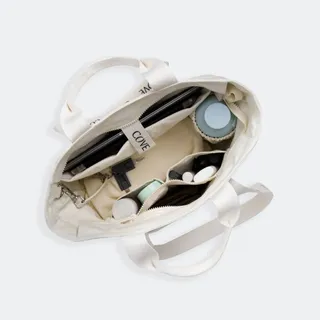 กระเป๋าผ้าใบใหญ่ จาก era-won โดดเด่นด้วยข้อความภาษาเกาหลีอ่านว่า “เอรา-วอน” ดูเท่และสะดุดตา กระเป๋าตัดเย็บจากผ้าทอแคนวาส เนื้อหนา อยู่ทรง สามารถรับน้ำหนักได้เยอะ และยังมาในขนาดใหญ่พิเศษ ตอบโจทย์สำหรับการใส่เสื้อผ้าและสัมภาระ สำหรับออกทริปสั้นๆ หรือเดินทางใกล้ๆ ได้ ด้านในมีช่องเสริมขนาดเล็กสำหรับเก็บของมีค่า สายกระเป๋าไม่ยาวจนเกินไป สามารถถือหรือสะพายไหล่ก็ได้