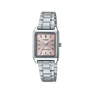 นาฬิกาข้อมือผู้หญิง Casio รุ่นคลาสสิก ขนาดกะทัดรัด ถูกออกแบบมาให้ใช้งานได้คล่องตัวในทุกกิจกรรม ตัวเรือนเป็นทรงสี่เหลี่ยม มาพร้อมหน้าปัดสีชมพูอ่อน สายนาฬิกาเป็นสเตนเลสสีเงิน ใส่แล้วให้ความรู้สึกเรียบหรู และยังสามารถนำไปแมตช์กับการแต่งตัวได้หลายสไตล์