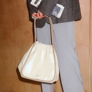 อีกหนึ่งกระเป๋า Tote Bag ทรงสวยและใบใหญ่จุใจ กระเป๋ารุ่นนี้ผลิตจากหนัง PU เกรดพรีเมียมหนังเงาและหนังกลับ ดีไซน์หรูหรา พร้อมตกแต่งด้วยสายเข็มขัดคาดที่ปากกระเป๋าและโบว์ที่ด้านข้าง และสามารถปลดโบว์เพื่อขยายกระเป๋าได้ สามารถใส่แท็บเล็ตและโน๊ตบุ๊กขนาด 13 นิ้วได้ ด้านหลังยังมีช่องซิปขนาดเล็ก สามารถใส่สิ่งของหรือสมาร์ทโฟนได้