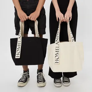 กระเป๋า Tote Bag ผ้าแคนวาสทรงสวย สามารถสะพายได้ทั้งผู้ชายและผู้หญิง มาพร้อมสายกระเป๋าขนาดใหญ่สกรีนลายโลโก้ HOMELAND มีกระดุมแม่เหล็กสำหรับปิดกระเป๋า และฐานรองกระเป๋ามาให้ในตัว สามารถใส่โน๊ตบุ๊กขนาด 15-16 นิ้วได้ มีให้เลือก 2 สี คือ สีดำและสีขาว
