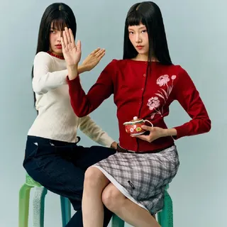 เสื้อคาร์ดิแกนแขนยาว CHUUCHOP - Meimei Cardigan เหมาะสำหรับคนที่มองหาเสื้อตรุษจีนที่สามารถสวมใส่ในโอกาสอื่นๆ ได้ โดดเด่นด้วยลวดลายดอกโบตั๋น สกรีนบนตัวเสื้อด้วยเทคนิคตัดคู่สี ทำให้ดูน่าสนใจและมีเอกลักษณ์เฉพาะตัว ตัดเย็บจากผ้าไหมพรมเนื้อนุ่ม ใส่สบายไม่ร้อน แต่งจั๊มบริเวณช่วงเอวและปลายแขนเสื้อ เมื่อสวมใส่แล้วจะดูสวยเพรียว