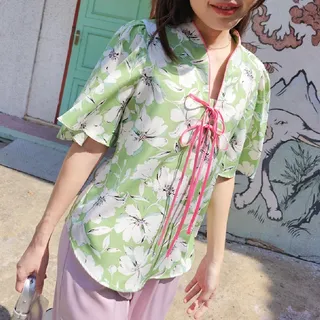 Theblancpale - Fu mei Top เสื้อตรุษจีนทรงคอปีน โอบคอสวย ให้ลุคที่ดูสุภาพเรียบร้อย สามารถนำไปแมตช์ได้กับลุคทางการและไม่ทางการ ตัวเสื้อมาในทรงปล่อย ผ้าบางแต่ไม่โปร่ง ระบายอากาศได้ดี ทำให้สวมใส่สบาย มีให้เลือกหลายสี ทั้งสีแดงโบว์ครีม, สีแดงโบว์กรม, สีเขียวดอกใหญ่ โบว์ชมพูเข้ม และสีเขียวดอกเล็ก โบว์ชมพูอ่อน