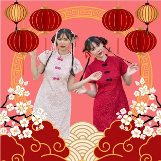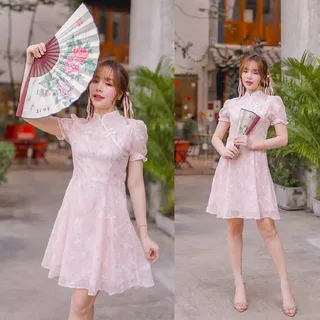ชุดเดรสตรุษจีน Chinese Angbao Dress แบรนด์ Jelly Dressing ให้ลุคสุภาพเรียบร้อย เหมาะกับคนที่มองหาชุดตรุษจีนสำหรับใส่ไปพบผู้ใหญ่ ตัวชุดมาในทรงพอดีตัว พิมพ์ลายดอกกุหลาบ ดีไซน์เว้าเอวเล็กน้อย แขนพอง แต่งกระดุมจีน มีให้เลือกทั้งสีแดงและสีชมพูอ่อน ตั้งแต่ไซส์ S-XL