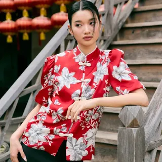 Stylist Shop - Shooni Blouse เสื้อเบลาส์ตรุษจีนดีไซน์สวยทันสมัย มาในทรงหลวมใส่สบาย มีดีเทลแขนเสื้อพองเล็กน้อยก่อนจั๊มปลาย ตัดเย็บจากผ้าซาตินพิมพ์ลายดอกไม้อย่างดี สัมผัสนุ่มลื่น ใส่แล้วไม่ระคายเคืองผิว กระดุมสามารถใช้งานได้จริง นำไปแมตช์ได้กับทั้งกางเกงและกระโปรง