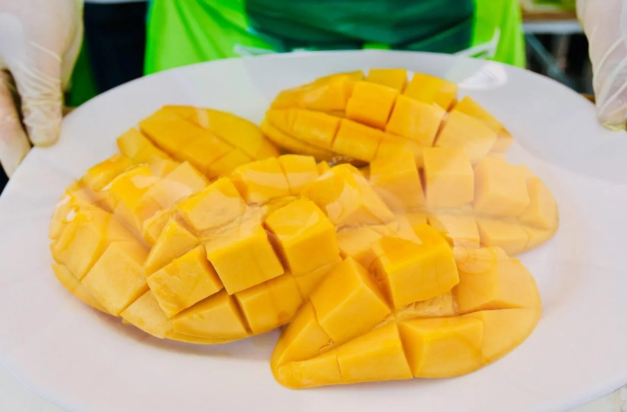 ข้าวเหนียวมะม่วง มักใช้มะม่วงน้ำดอกไม้สุก ปอกเปลือกหั่นพอดีคำ ราดบนข้าวเหนียวที่ผ่านการนึ่งและมูนด้วยน้ำกะทิ เมื่อเสิร์ฟราดด้วยน้ำกะทิ โรยด้วยถั่วเขียวเลาะเปลือกคั่ว อร่อยอย่าบอกใคร