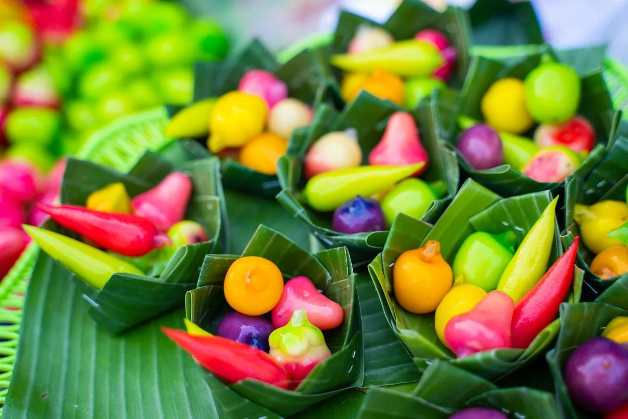 ลูกชุบ เป็นขนมไทยที่ทำจากถั่วเขียว ไส้ทำมาจากถั่วเขียวเลาะเปลือกนึ่งปั่นกับหัวกะทิและน้ำตาลทราย นำมาปั้นพักเสียบไม้ไว้ เพื่อนำมาจุ่มกับสีผสมอาหาร และเคลือบด้วยวุ้น ปักด้วยใบไม้ให้สมจริง เพิ่มสีสันความสวยงาม