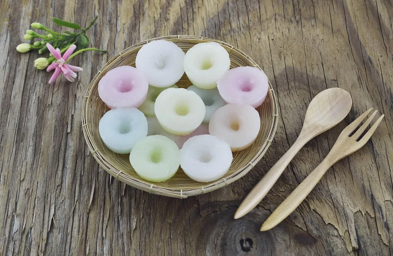 ขนมน้ำดอกไม้ ทำมาจากแป้งข้าวเจ้า ผสมแป้งท้าวยายม่อม นำมาตีผสมกัน แล้วใส่สีผสมอาหารตามชอบ เมื่อเทขนมลงถ้วยนึ่งสุกแล้ว รอถ้วยเย็นจึงใช้ไม้แคะออกมาจากถ้วยพิมพ์ พร้อมเสิร์ฟขนมน้ำดอกไม้หน้าตาสวยๆ