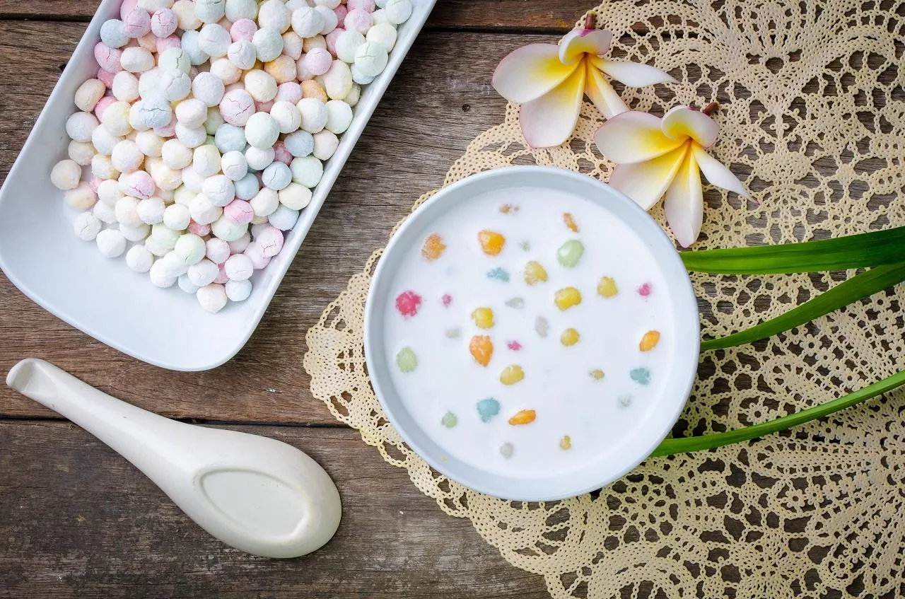 บัวลอย เป็นอีกขนมที่ทำจากแป้งปั้นใส่น้ำกะทิ เกิดการสร้างสรรค์ผสมแป้งผสมอาหาร แล้วนำไปต้มกับน้ำกะทิ ที่ปรุงหวานอย่างพอดีด้วยน้ำตาลปี๊บและน้ำตาลทราย ใส่มะพร้าวอ่อนกับไข่ หรือไข่เค็มได้ตามความชอบ