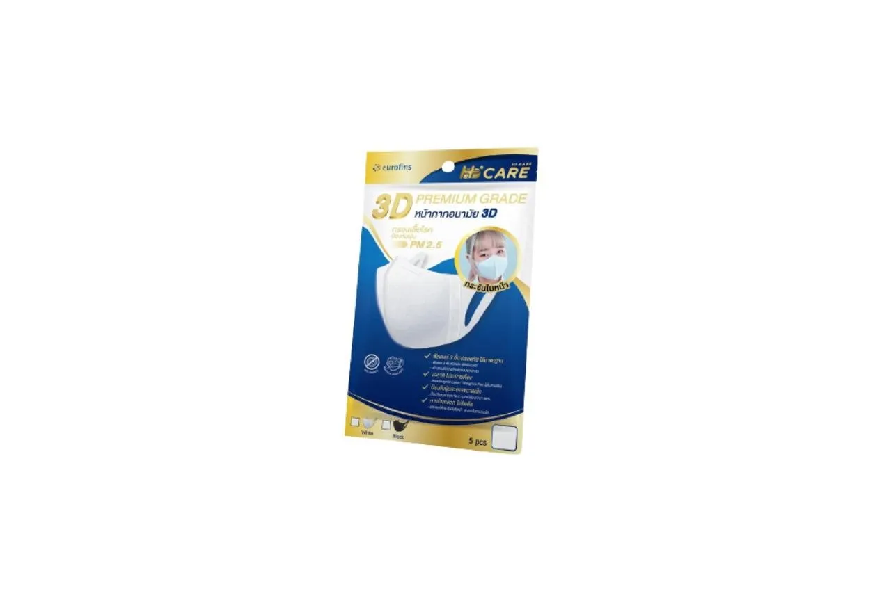 หน้ากากอนามัยทรง 3D ผลิตจากวัสดุพิเศษ ได้การรับรองมาตรฐานจากประเทศญี่ปุ่น ออกแบบตามหลักสรีระ เพื่อให้สวมใส่ได้สบายตลอดทั้งวัน ช่วยระบายอากาศได้ดี ใส่แล้วหายใจสะดวก มีให้เลือกทั้งหมด 3 สี คือ สีขาว สีดำ และสีเบจ สามารถเลือกสีใส่ได้ตามลุคการแต่งกายในแต่ละวันได้