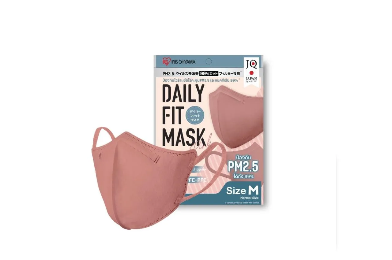 หน้ากากอนามัยหน้าเรียวอีกรุ่นจาก IRIS OHYAMA ที่ได้รับความนิยมไม่แพ้กันคือรุ่น Daily Fit เป็นรุ่นที่มาพร้อมรูปทรงแบบ 3D มีโครงตรงบริเวณจมูก ปรับให้เข้ากับรูปหน้าได้ แต่ในขณะเดียวกันก็ไม่ได้ทำให้อึดอัดหรือหายใจไม่สะดวก สายคล้องหูนิ่ม ใส่สบายตลอดทั้งวัน