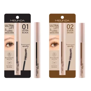 Ultra Lift & Long Mascara มาสคาร่ารุ่นฮิตจาก MEILINDA ช่วยงัดขนตาให้ดูงอนเด้งตลอดวัน ล็อกขนตาให้อยู่ทรงสวย กันน้ำ กันเหงื่อ ไม่จับตัวเป็นก้อน หัวแปรงไซส์ขนาดพอดีเข้ากับรูปตาของสาวเอเชีย มีให้เลือก 2 สี คือ สี Ultra Black และสี Ever Brown