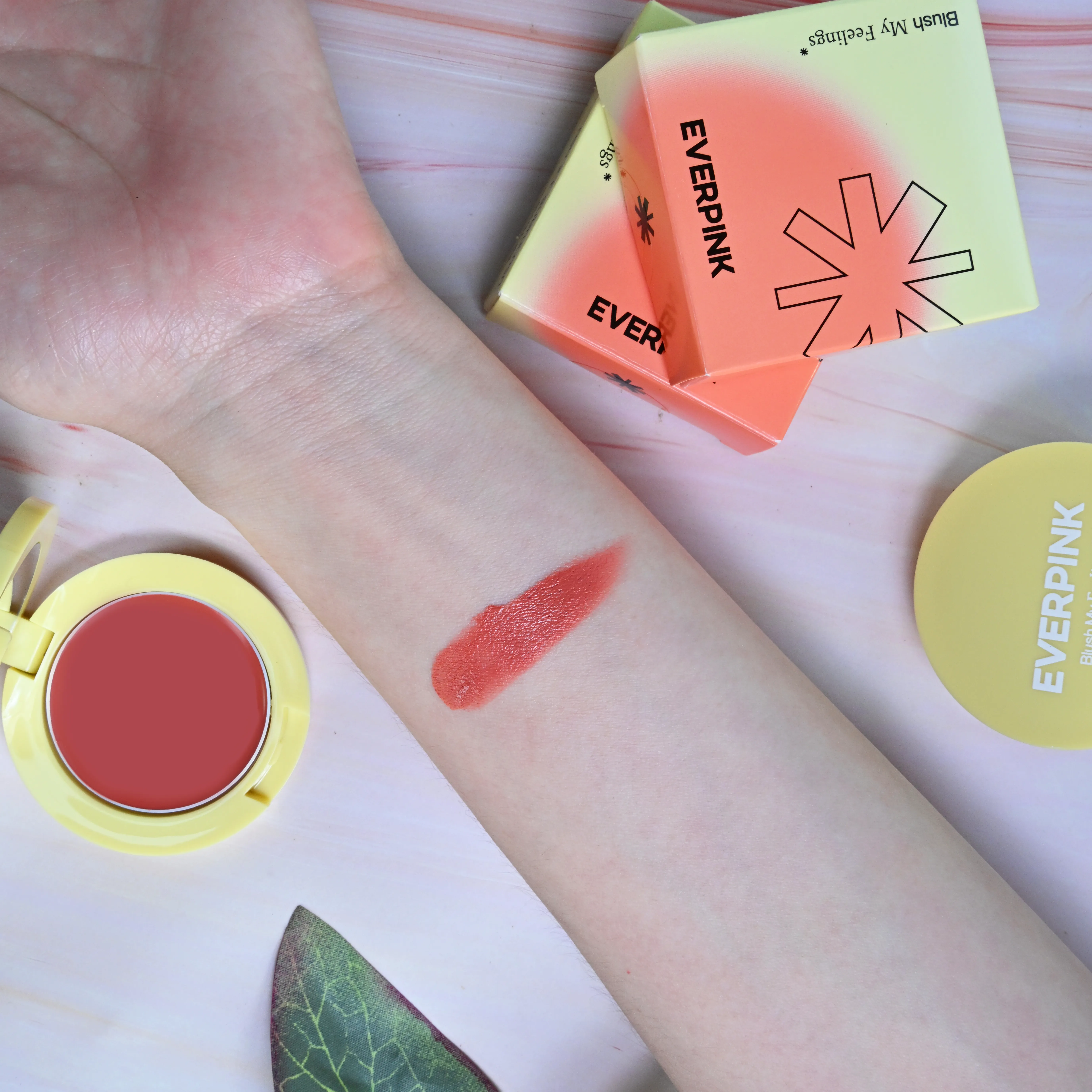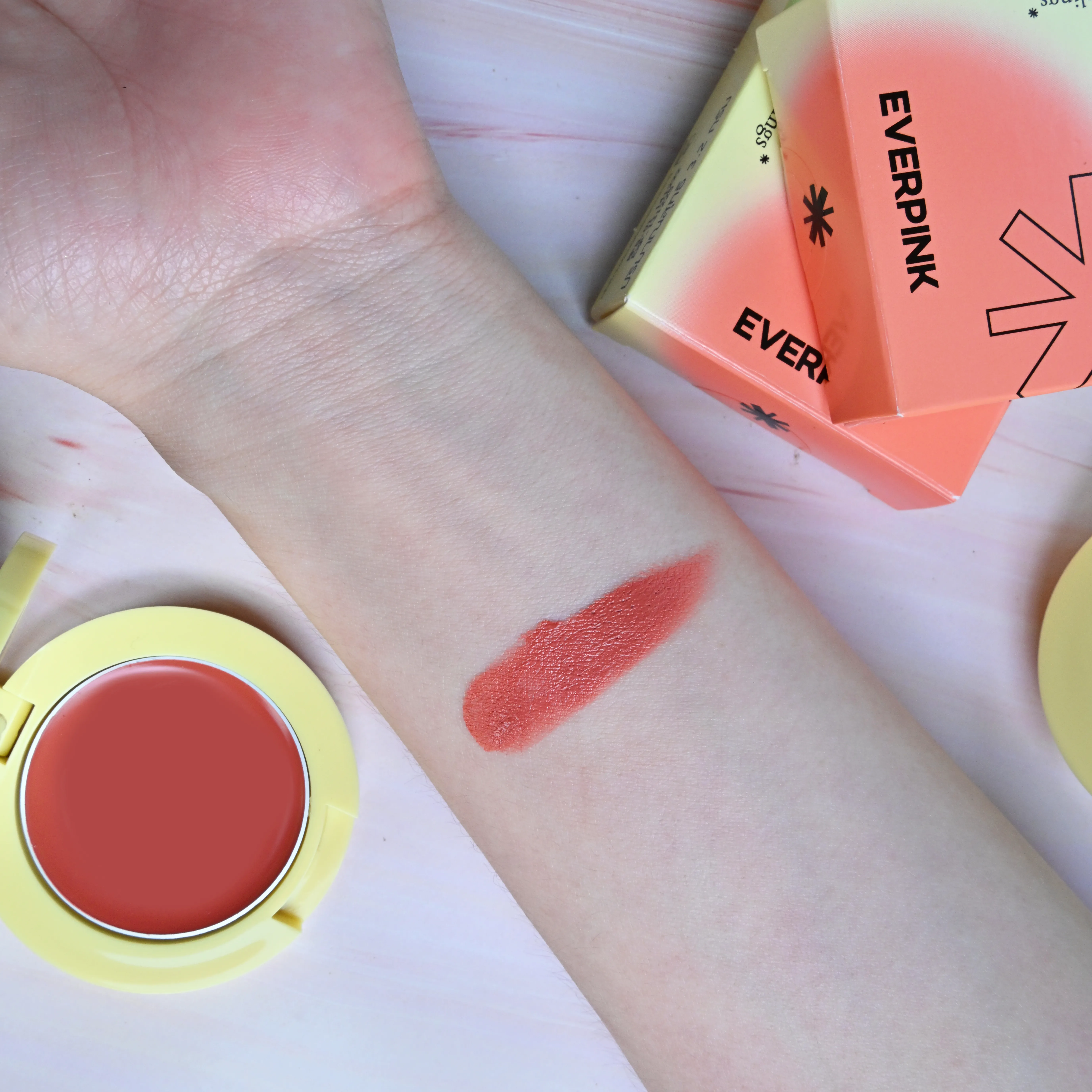 EVERPINK Blush My Feelings บลัชออนเนื้อครีม ให้ฟินิชผิวแบบแมตต์ ไม่มีความมัน เนื้อบลัชออนมีความฟู นุ่ม เบลนด์ง่าย อุดมไปด้วยสารสกัดที่ช่วยบำรุงผิวให้ชุ่มชื้น ดูเปล่งปลั่งอย่าง Squalene และวิตามินอี สามารถใช้ได้กับทั้งบริเวณรอบดวงตาและริมฝีปากได้อีกด้วย มาในแพ็กเกจแบบตลับ มีกระจกในตัว ขนาดกะทัดรัด พกพาไปข้างนอกได้สะดวก มีให้เลือกทั้งหมด 5 สี