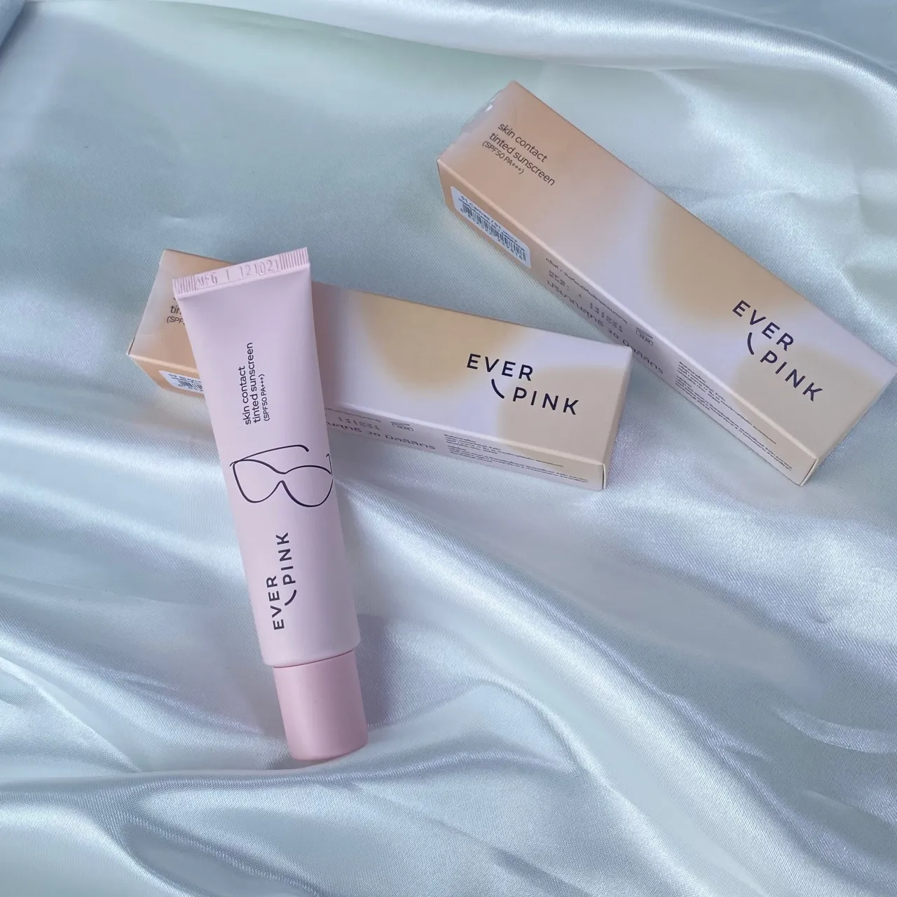 ต่อกันที่ไอเทมงานผิวอย่าง EVERPINK Skin Contact Tinted Sunscreen รองพื้นเนื้อบางเบา ใช้แล้วสบายผิว พร้อมเติมความชุ่มชื้นให้ผิวระหว่างวัน มีส่วนผสมของสารกันแดด SPF50 PA+++ ป้องกันผิวหน้าจากแสง UVA และ UVB ได้ ให้ฟินิชลุคแบบผิวฉ่ำวาว ดูชุ่มชื้นสุขภาพดี มีให้เลือกทั้งหมด 3 สี