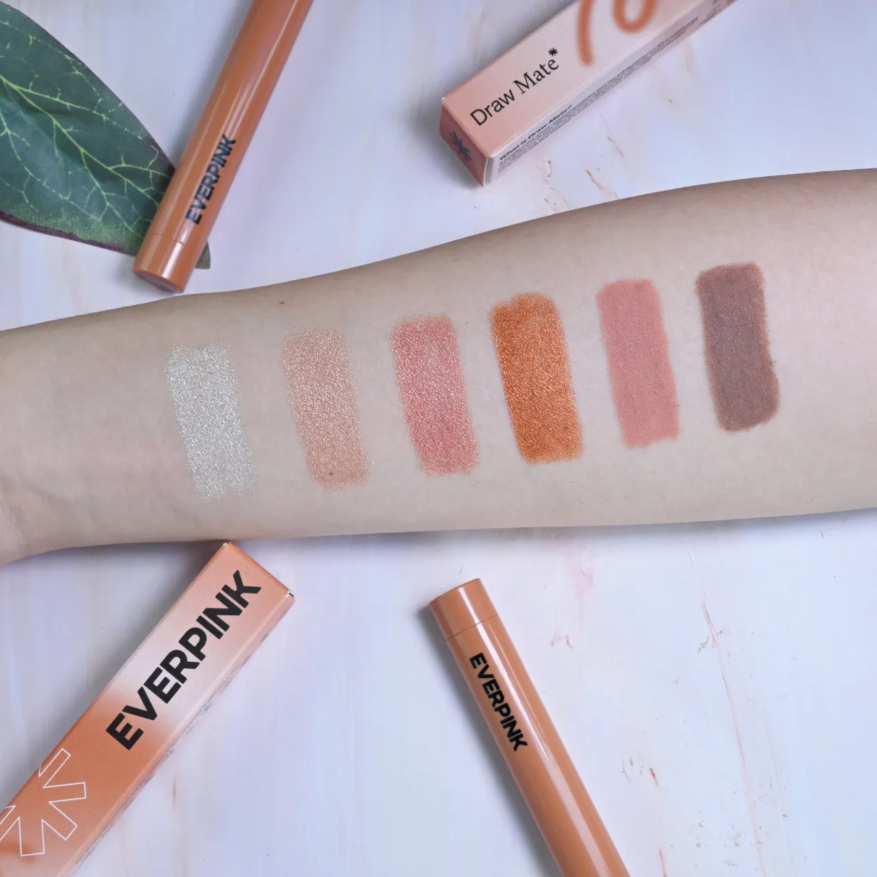 EVERPINK Draw Mate อายแชโดว์รูปแบบแท่ง จับถนัดมือ เขียนง่าย มีส่วนผสมจากสารสกัดน้ำมันมะพร้าว ช่วยเคลือบผิวพร้อมเติมความชุ่มชื้นให้ผิวบริเวณเปลือกตา พิกเมนต์สีชัด สีสวยติดทน กันน้ำกันเหงื่อ เนื้อสัมผัสนุ่มลื่น จะใช้วาดหรือเบลนด์ก็ทำได้ง่าย ส่วนปลายแท่งมีกบเหลามาให้ในตัว สามารถใช้เหลาเพิ่มความแหลมได้ตามต้องการ มีให้เลือกทั้งหมด 6 สี 3 เนื้อสัมผัส