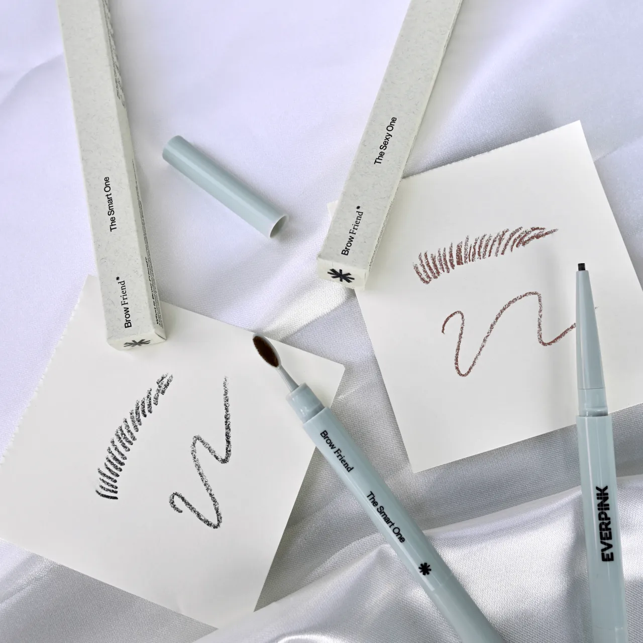 ดินสอเขียนคิ้ว EVERPINK Brow Friend บิวตี้ไอเทมที่ช่วยเติมเต็มและจัดแต่งทรงคิ้ว เนื้อดินสอมีความนุ่มลื่น เขียนง่าย พิกเมนต์สีชัด เขียนแล้วติดทน มีส่วนผสมจากธรรมชาติที่หาได้ในไทย เช่น สารสกัดดอกอัญชัน ช่วยลดปัญหาเส้นขนหลุดร่วง หรือจะเป็นสารสกัดน้ำมันมะกอกที่ช่วยบำรุงขนคิ้วให้ดูเงางาม มาพร้อมกับหัวแปรงทรงคาบูกิ ทำจากขนสังเคราะห์ ปัดคิ้วให้สวยเป็นทรงได้โดยไม่ทำร้ายผิวหนัง มีให้เลือกทั้ง 2 สี