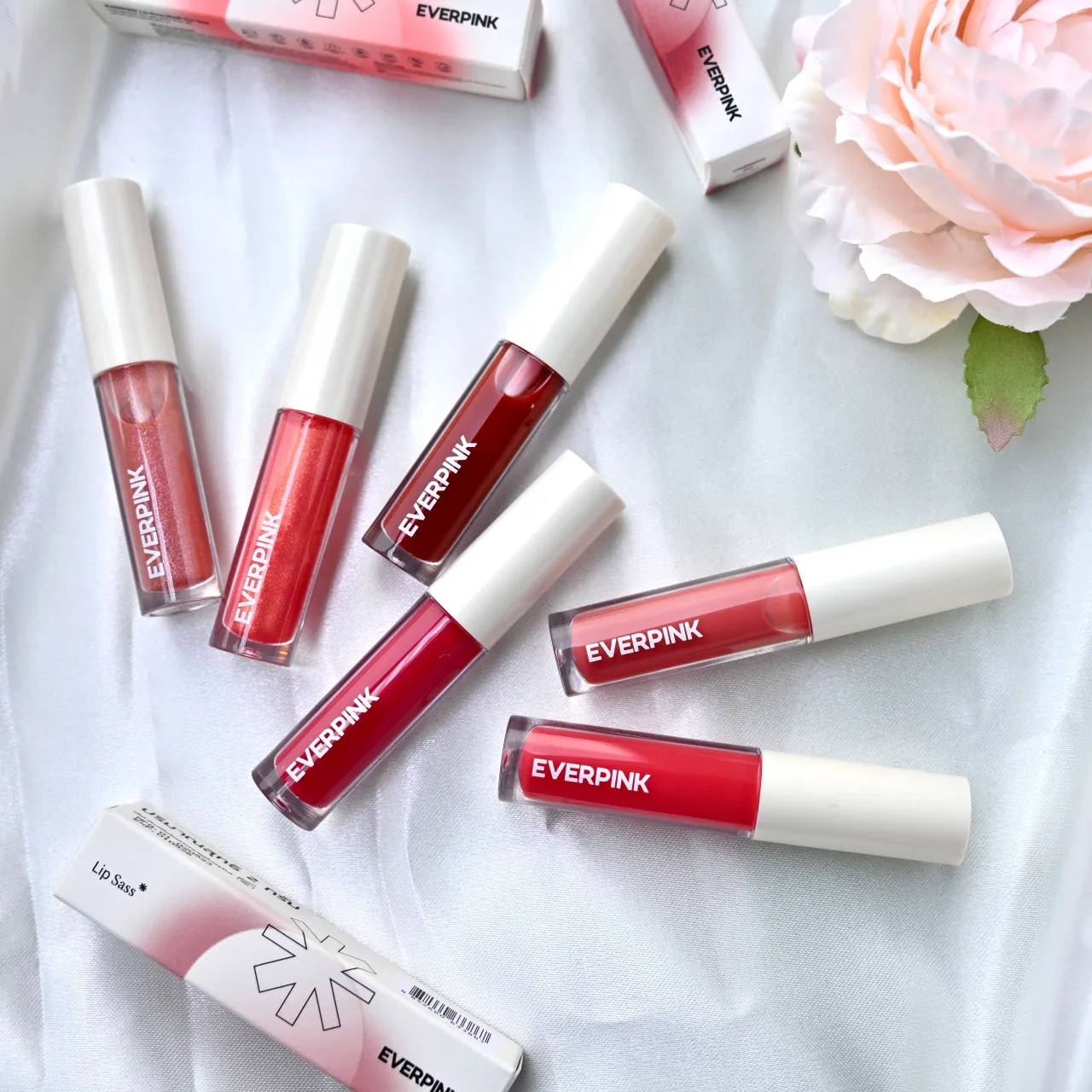 EVERPINK Lip Sass ลิปสติกจิ้มจุ่ม เนื้อลิควิด ทาแล้วให้ฟินิชลุคแบบกลอส ช่วยให้ริมฝีปากดูฉ่ำวาว สุขภาพดี เนื้อลิปเหลวเกลี่ยง่าย ไม่เหนียวเหนอะหนะ พิกเมนต์สีชัด มีส่วนผสมจาก 3D Multi-Peptides และ Hyaluronic Acid ช่วยบำรุงริมฝีปากได้อย่างล้ำลึก ให้ริมฝีปากแลดูเต่งตึง อ่อนเยาว์ มีให้เลือกทั้งหมด 6 สี