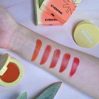 บลัชออน EVERPINK Blush My Feelings มาในรูปแบบเนื้อครีม พิกเมนต์สีสวยชัด ทาแล้วสีแน่นติดทน ให้ฟินิชผิวแบบแมตต์ ไม่มีความมัน ใช้แล้วไม่เยิ้ม เนื้อเกลี่ยง่าย บางเบา มีส่วนผสมที่ช่วยบำรุงผิวหน้าไปในตัว ไม่ว่าจะเป็น Squalene ช่วยบำรุงผิวให้รู้สึกอ่อนนุ่ม ดูเปล่งปลั่ง ช่วยป้องกันการศูนย์เสียน้ำในชั้นผิว และ Vitamin E ช่วยบำรุงผิวให้นุ่มชุ่มชื้น พร้อมต่อต้านอนุมูลอิสระ ตลับขนาดกะทัดรัด มีกระจกมาให้ในตัว มีให้เลือกทั้งหมด 5 สี