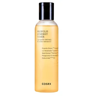 โทนเนอร์ COSRX Full Fit Propolis Synergy Toner ใช้ได้กับทุกสภาพผิวไม่ว่าจะเป็นผิวมัน ผิวแห้งและผิวผสม อุดมไปด้วยสารสกัดจาก Black Propolis กว่า 72% มีคุณสมบัติในการช่วยต่อต้านแบคทีเรียและปลอบประโลมผิวจากการอักเสบ ช่วยให้ผิวแลดูนุ่ม ชุ่มชื้น เปล่งปลั่งกระจ่างใส ปราศจากสารก่อให้แพ้ต่างๆ เช่น พาราเบน มิเนอรัลออยล์ แอลกอฮอล์ ซิลิโคน และสีสังเคราะห์