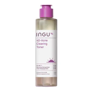 INGU 4D-Acne Clearing Toner โทนเนอร์แบรนด์ไทย ที่มีส่วนช่วยในการรักษาสิวอย่างอ่อนโยน ช่วยในการยับยั้ง 4 กลไกของกาารเกิดสิว เช่น ความมันส่วนเกิน เซลล์ผิวหนังที่อุดตัน การเติบโตของเชื้อแบคทีเรีย และการอักเสบของผิวหนัง มีส่วนผสมจากสารสกัดเปลือกมังคุด คนเป็นสิว ผิวแพ้ง่าย สามารถใช้ได้
