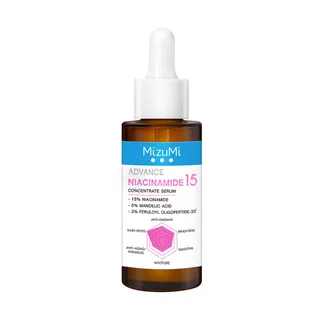 เซรั่มไนอะซินาไมด์สูตรเข้มข้นสูงถึง 15% มีส่วนช่วยลดความหมองคล้ำให้ผิวดูสม่ำเสมอ พร้อมช่วยลดเลือนรอยสิว จุดด่างดำให้แลดูจางลง นอกจากนี้ยังมีส่วนผสมของ Mandelic Acid AHA สารผลัดเซลล์ผิวที่มีความอ่อนโยนเป็นพิเศษ, Feruloyl Oligopeptide-33 นวัตกรรมเปปไทด์รูปแบบใหม่, Thyme Extract สารสกัดจากต้นไทม์ป่า และสารสกัดจากพืชเกาหลี ช่วยบำรุงผิวให้กระจ่างใส ปรับสีผิวให้สม่ำเสมอ ปลอบประโลมผิว พร้อมเติมความชุ่มชื้น เนื้อเซรั่มสัมผัสบางเบา ไม่เหนอะหนะผิว สามารถใช้ได้ทั้งเช้า-เย็น