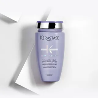 KERASTASE Blond Absolu Bain Ultra-Violet แชมพูม่วงที่อุดมไปด้วยสารสกัดจากธรรมชาติอย่างดอกเอเดลไวส์ มีส่วนช่วยในการต้านอนุมูลอิสระ พร้อมปกป้องเส้นผมจากมลภาวะภายนอก ผสานด้วยไฮยาลูโรนิก แอซิดเข้มข้น บำรุงเส้นผมจากภายใน ฟื้นบำรุงให้ผมกลับมาแข็งแรงและชุ่มชื้นมากยิ่งขึ้น นอกจากนี้แชมพูยังช่วยลดเม็ดสีเหลืองในเส้นผม ทำให้คงโทนสีหม่น หรือสีบลอนด์ของผมทำสีไว้ได้นาน และยังช่วยให้เส้นผมดูเปล่งประกาย เงางาม