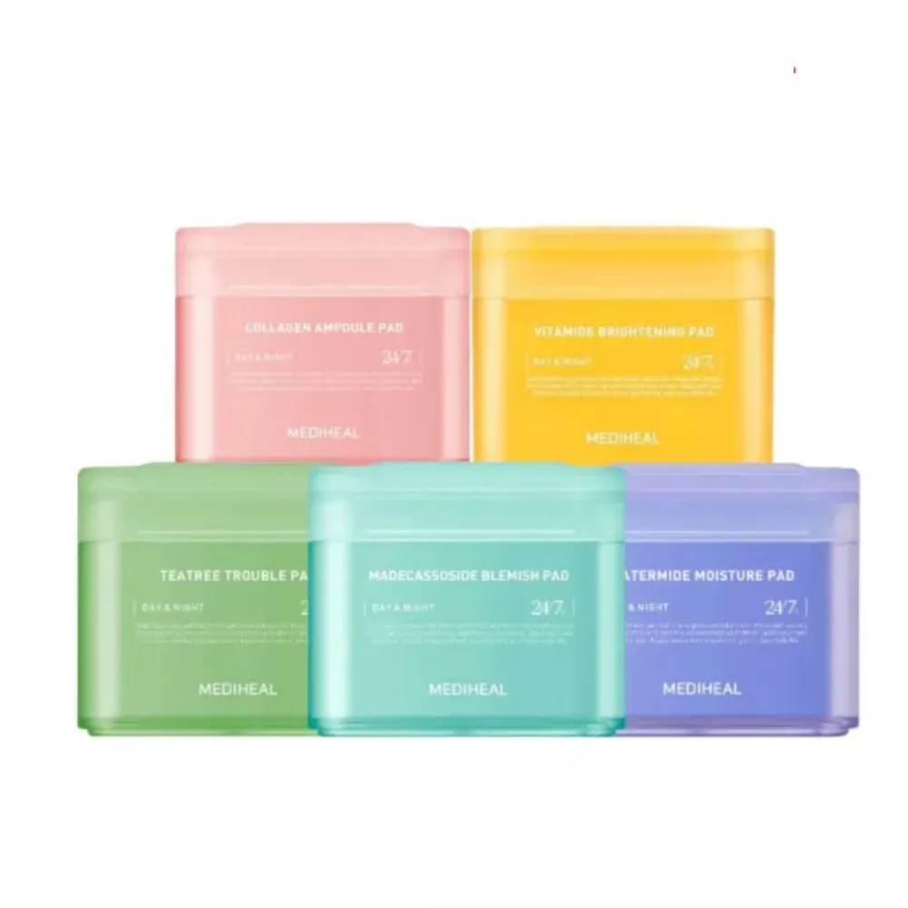 โทนเนอร์แผ่น MediHeal โดดเด่นด้วยแผ่นเช็ดบำรุงผิวแบบ EcoSilk ผลิตจากเส้นใยธรรมชาติ ให้เนื้อสัมผัสนุ่มละมุน เช็ดแล้วไม่บาดผิว และยังสามารถดูดซึมเนื้อเอสเซนส์ได้ดี เหมาะสำหรับใช้เช็ดบำรุงผิวหลังล้างหน้า หรือใช้เป็นแผ่นมาสก์เฉพาะจุดได้ มีให้เลือก 7 สูตร ดังนี้