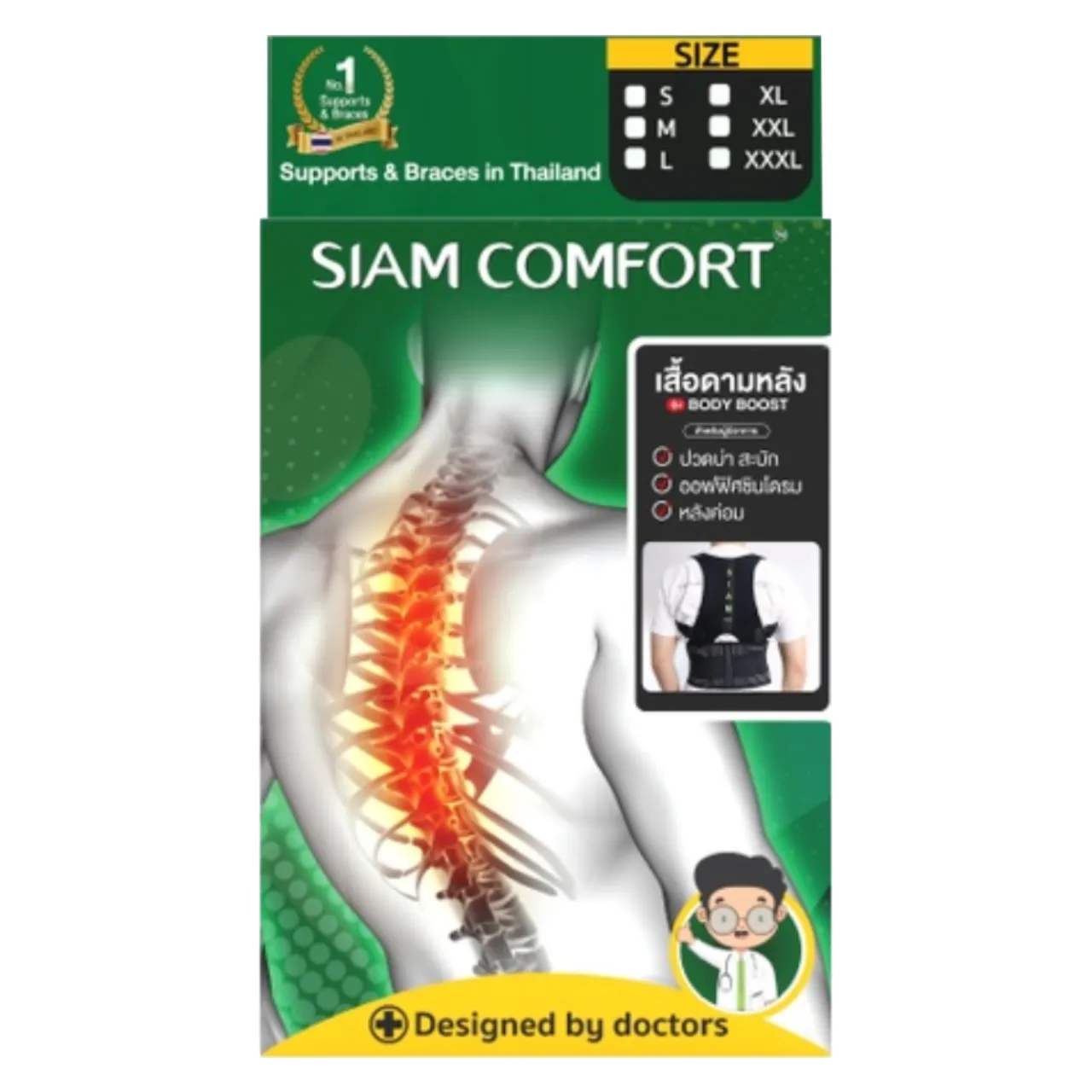 Siamcomfort Body Boost Posture Support เข็มขัดพยุงหลังจากแบรนด์ Dr.Pong ออกแบบมาให้ช่วยในการบรรเทาอาการปวดหลัง-เอว ช่วยฟื้นฟูอาการปวดหลังจากการยกของหนัก ตลอดจนเป็นตัวช่วยในการแก้อาการหลังค่อม หรือไหล่ห่อ เข็มขัดมาในดีไซน์ดับเบิลเลเยอร์ ช่วยเพิ่มความกระชับ รัดสบาย ระบายอากาศได้ดี ไม่ร้อนหรือชื้น