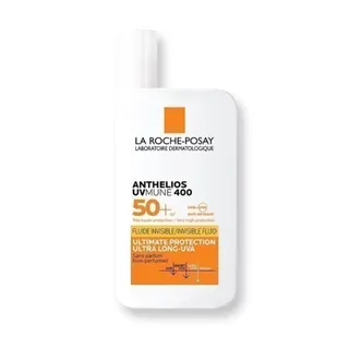 ครีมกันแดด La Roche-Posay Anthelios UVMune 400 Invisible Fluid ครีมกันแดด SPF50+ ยอดนิยม เป็นสูตรกันน้ำกันเหงื่อ มีเนื้อสัมผัสบางเบา ไม่ทิ้งคราบขาว พร้อมปกป้องผิวจากฝ้าแดด ริ้วรอย ผิวหมองคล้ำ ด้วย Mexoryl 400 เทคโนโลยีล่าสุดของแบรนด์ ช่วยในการปกป้องผิวจากมลภาวะและรังสีได้อย่างล้ำลึกและยาวนาน ป้องกันได้ทั้ง UVA, UVB และ Ultra Long UVA