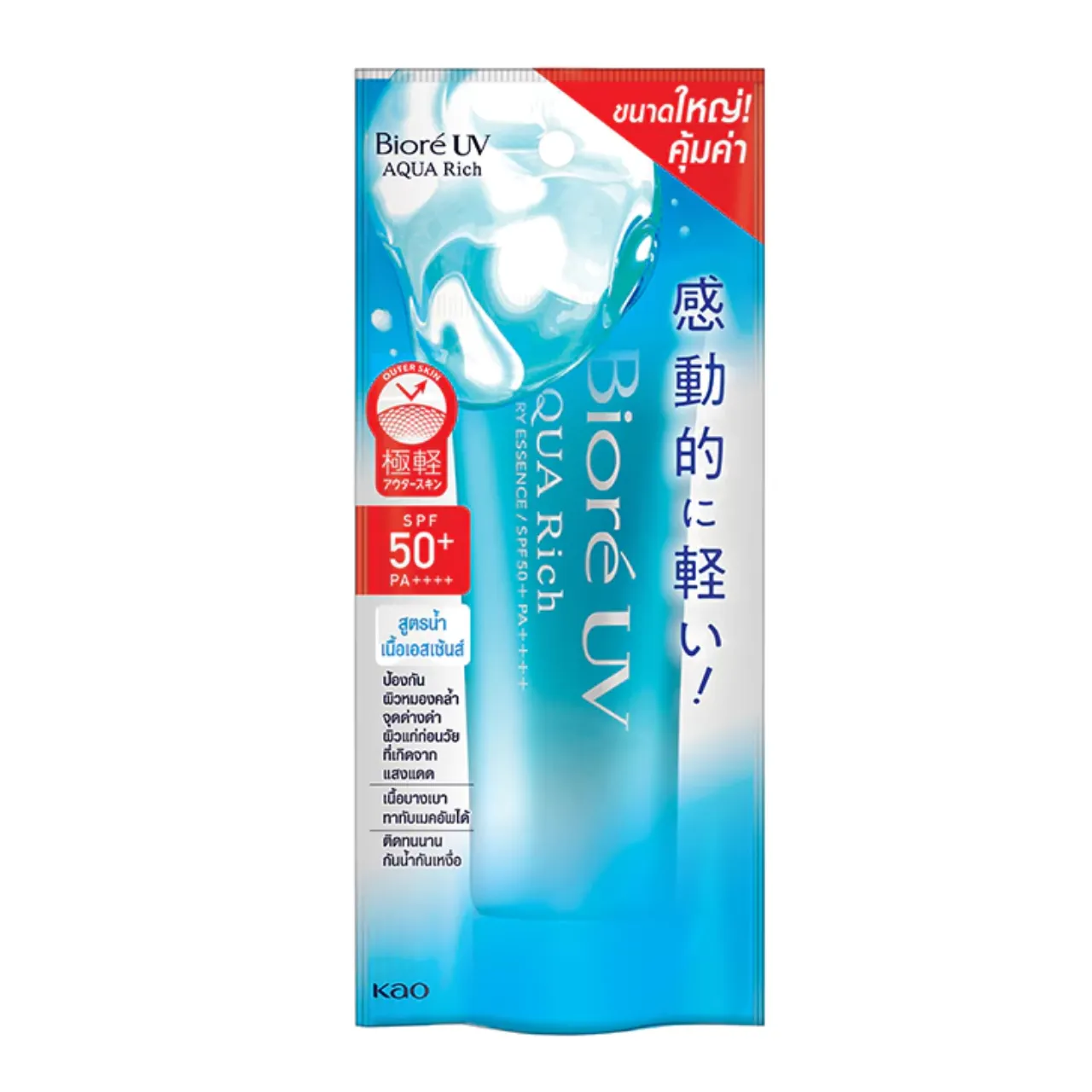 ใครที่มีความกังวลในเรื่องของริ้วรอยก่อนวัย ไทยรัฐช็อปปิ้งขอแนะนำ Biore UV Aqua Rich Watery Essence SPF50+ PA++++ ครีมกันแดด SPF50+ ที่ได้รับฉายาว่า กันแดดกันแก่ โดดเด่นด้วยอนุภาคกันแดดที่เล็ก ทำให้สามารถปกป้องผิวได้แม้กระทั่งริ้วรอยหรือรอยลึกบนใบหน้า ปกป้องผิวหน้าได้ทั้ง UVA และ UVB ช่วยให้ผิวแลดูอ่อนเยาว์ กระจ่างใส และสุขภาพดีอย่างเป็นธรรมชาติ